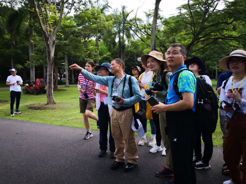 8月1日,与会教师从昆明市启程出发,前往云南大学西双版纳生物学野外实习基地实地考察,途中考察了元江干热河谷。8月2日上午,由云南大学陆树刚教授、王跃华教授、和兆荣副教授、王焕冲副教授分组带领与会教师考察了西双版纳热带花卉园,开展热带花卉植物的辨识和生态学特征观察与学习;8月2日下午,与会教师考察了西双版纳野象谷,在云南大学陈明勇教授的带领下重点考察了中国亚洲象种源繁育及救助中心,了解亚洲象保护的有关情况;8月2日晚,由云南大学陈善元教授主持了学术交流活动。云南大学王跃华教授做了题为“云南植物多样性及珍稀特有物种保护探索”的精彩学术报告,向与会教师进一步介绍了云南丰富的植物资源概况,特别是一些极小种群的物种发现及保护研究。中山大学廖文波教授做了题为“试从四个途径畅谈如何加深对植物多样性的认识”的精彩学术报告,提出要从系统学、生态学、地理学及资源学等角度深入认识植物多样性。