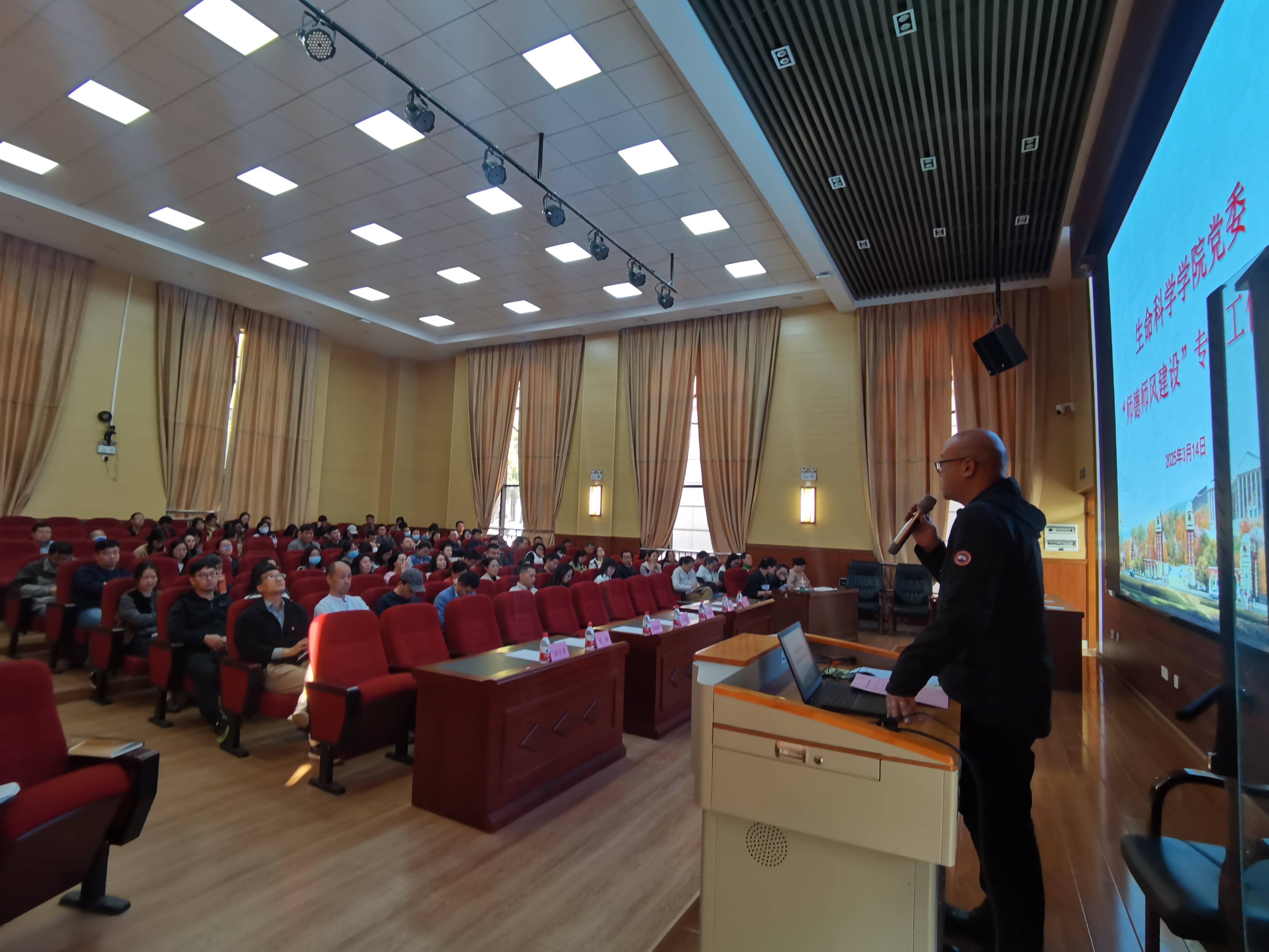 同日,生命科学学院党委组织召开“师德师风建设”专题工作会议,学院党委成员单位全体教职工参加会议。会议传达了师德师风建设专题会议的内容和要求,集体学习《新时代高校教师职业行为十项准则》,学院将以“严的基调、严的措施、严的氛围”贯穿师德师风建设各项工作要求,强调所有教职工必须牢记师德师风红线,贯彻落实“十项准则”,严格规范自身言行,严守教师职业道德,履行好教师职责,塑造学高为师、身正为范的育人环境。