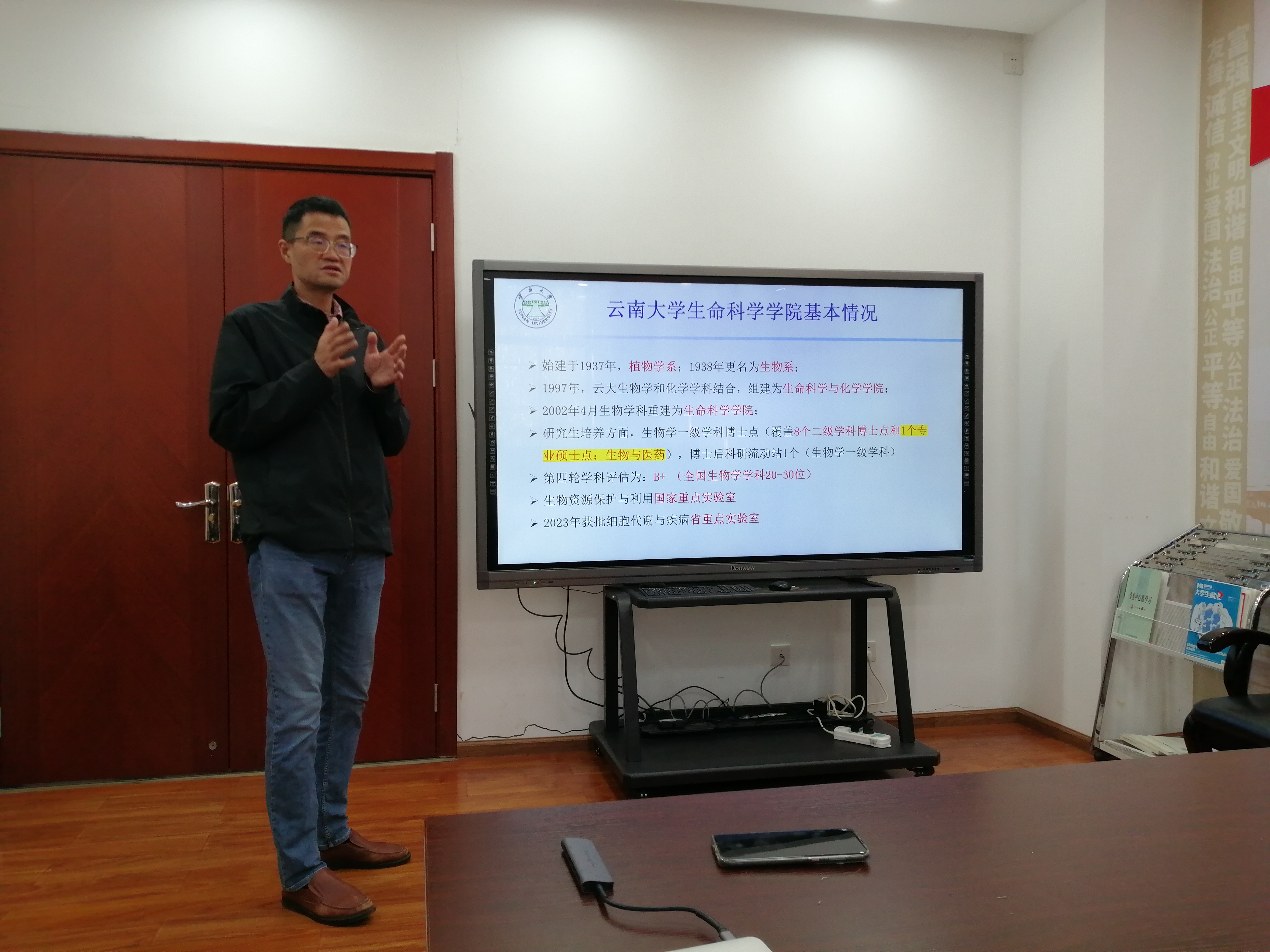 2023年11月9日上午,普洱学院罗银玲教授一行四人至我院进行科研工作交流,交流座谈会在生科院1栋1102会议室举行。普洱学院罗银玲教授、陶川教授和黄竹珺等老师参加会议。我院赖凡研究员、彭城研究员、办公室主任张旭及相关工作人员出席会议。会议由生科院赖凡研究员主持。