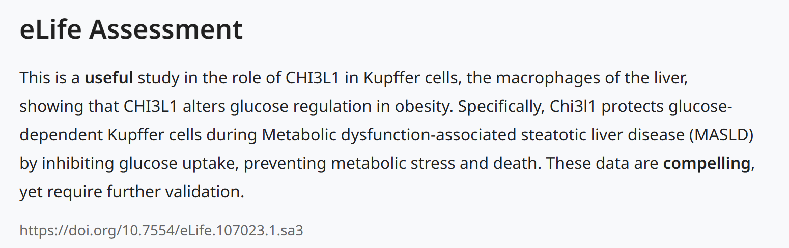 这意味着,Chi3l1相当于在KCs和葡萄糖之间安装了一个“限流阀”:既满足细胞能量需求,又避免因代谢过载而牺牲。这一机制在疾病早期尤其关键,可以延缓KCs死亡,阻止炎性细胞过早接管肝脏环境,从而减缓MASLD的进展。