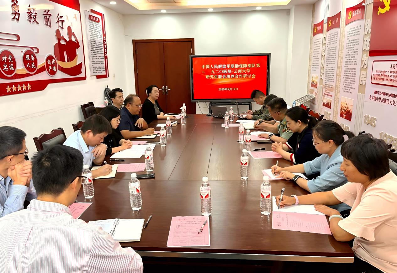 2025年9月12日下午,中国人民解放军联勤保障部队第九二〇医院与云南大学在生命科学学院1号楼1102会议室成功召开研究生联合培养合作研讨会。本次会议以“优势互补、协同育人”为宗旨,旨在搭建校院合作桥梁,深化生命医学领域人才联合培养机制,整合科研与教学资源,为共同推进高层次人才培养奠定坚实基础。