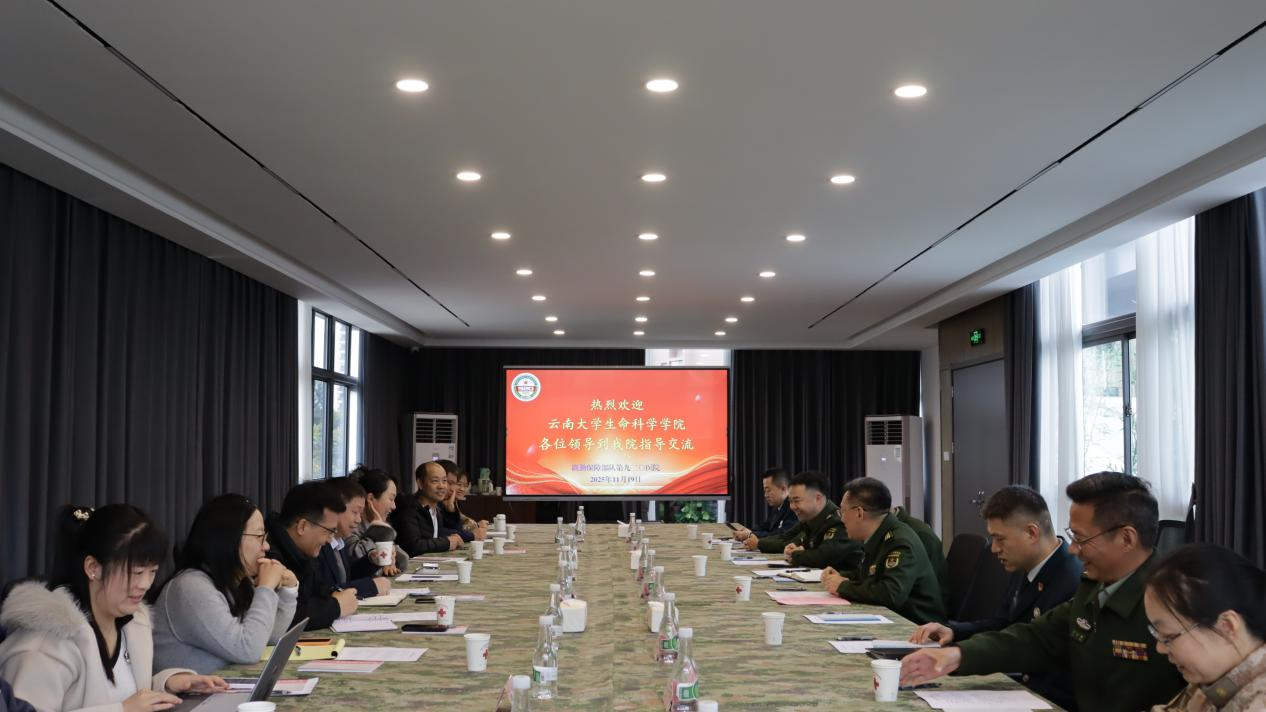 访问期间,云大生命科学学院一行与九二〇医院相关领导及部门负责人进行了座谈交流。双方回顾了既往合作取得的积极进展,并重点围绕如何深化生物医学领域的高层次人才协同培养展开了深入探讨。在研究生联合培养方面,双方就课程设置、科研实践、导师配备、学位授予标准等环节的衔接与优化交换了意见,致力于探索建立更加顺畅、高效的合作机制,以共同提升研究生培养质量。同时,与会人员还就推动双方导师围绕特定科研方向组建联合团队、共享实验室资源、合作申请重大科研项目等可能性进行了探讨,期望通过优势互补,产出一批具有影响力的创新成果。