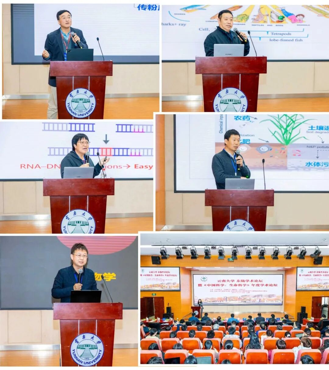 编委会后,举办了“《中国科学:生命科学》年度学术论坛暨云南大学东陆学术论坛”。瞿礼嘉院士、何舜平院士、王二涛教授、高彩霞研究员、刘光慧研究员先后作学术报告,分享了植物育种、水生生物学、微生物共生、基因编辑、衰老研究等领域的最新研究进展。曹晓风院士和云南大学段兴武副校长在论坛上致辞,张克勤院士等200余名云南大学师生以及《中国科学:生命科学》部分编委开展了学术交流与研讨。论坛由ky开元集团院长于黎教授主持。