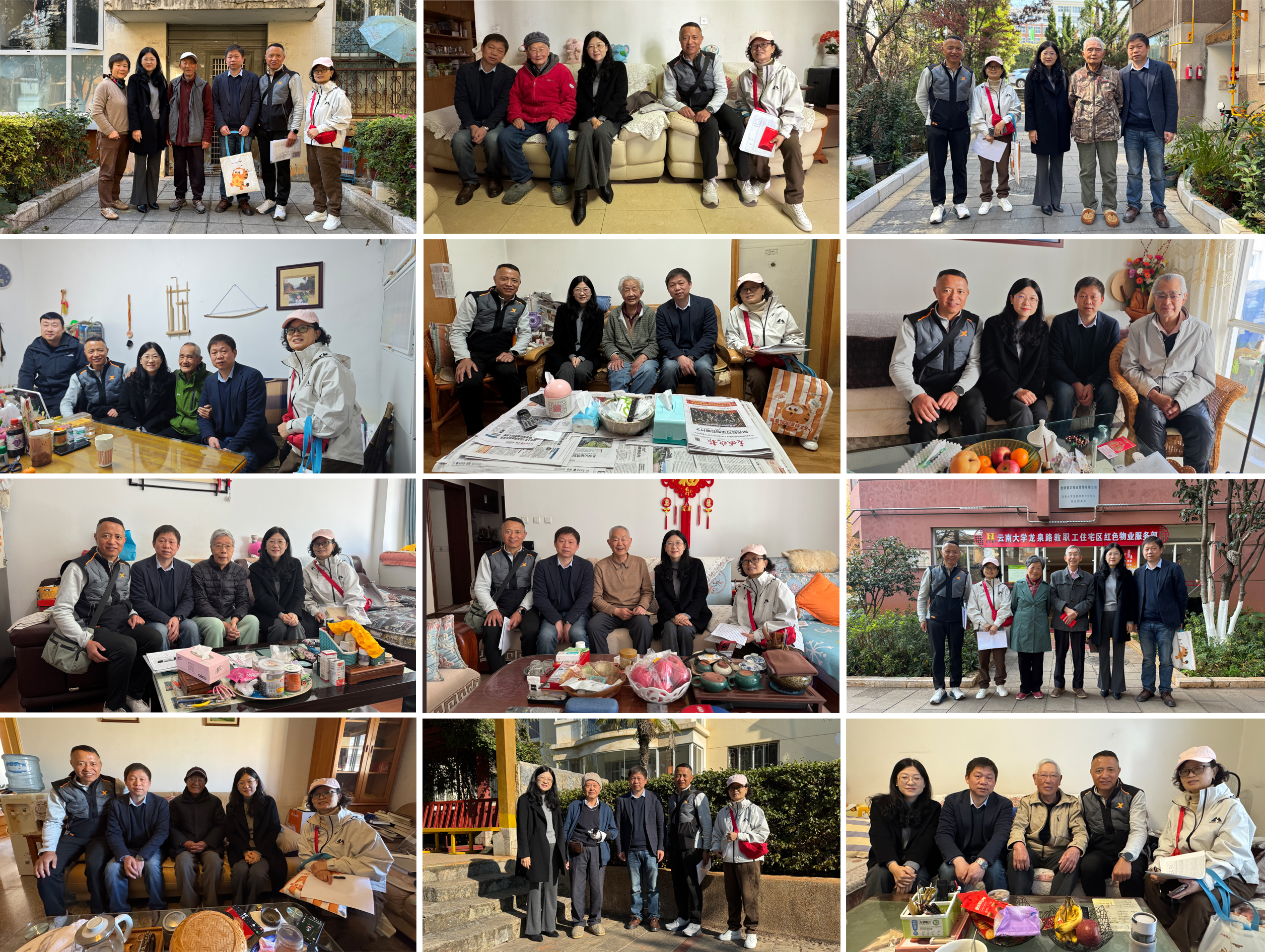 为深入贯彻落实校党委组织部、校工会关于切实做好2026年元旦春节期间走访慰问工作的部署要求,进一步弘扬尊老敬老优良传统,传递学院对离退休教职工的关怀与温暖,27日,ky开元集团党委书记王贤智、院长于黎、副院长和兆荣一行,以及离退休工作相关老师,先后前往云南大学龙泉路教职工住宅区、东一院住宅区、东二院住宅区和北院住宅区,深入老教师家中开展走访慰问,为学院退休老领导、老党员及老教师代表送去组织的关怀与新春的祝福。