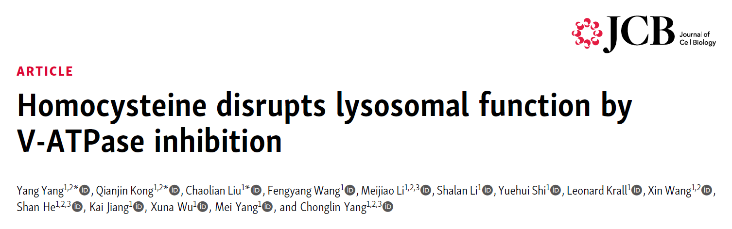 2025年11月25日,ky开元集团杨崇林(现任职于首都医科大学附属北京儿童医院)与杨玫课题组在《Journal of Cell Biology》发表题为 “Homocysteine disrupts lysosomal function by V-ATPase inhibition”的研究论文。研究团队利用秀丽隐杆线虫(C. elegans)进行非偏好性的遗传筛选,首次揭示了同型半胱氨酸(Hcy, 又称高半胱氨酸)累积直接损害溶酶体功能的分子机制,并在小鼠模型中得到验证,揭示了溶酶体功能障碍在同型半胱氨酸血症中的关键致病作用。