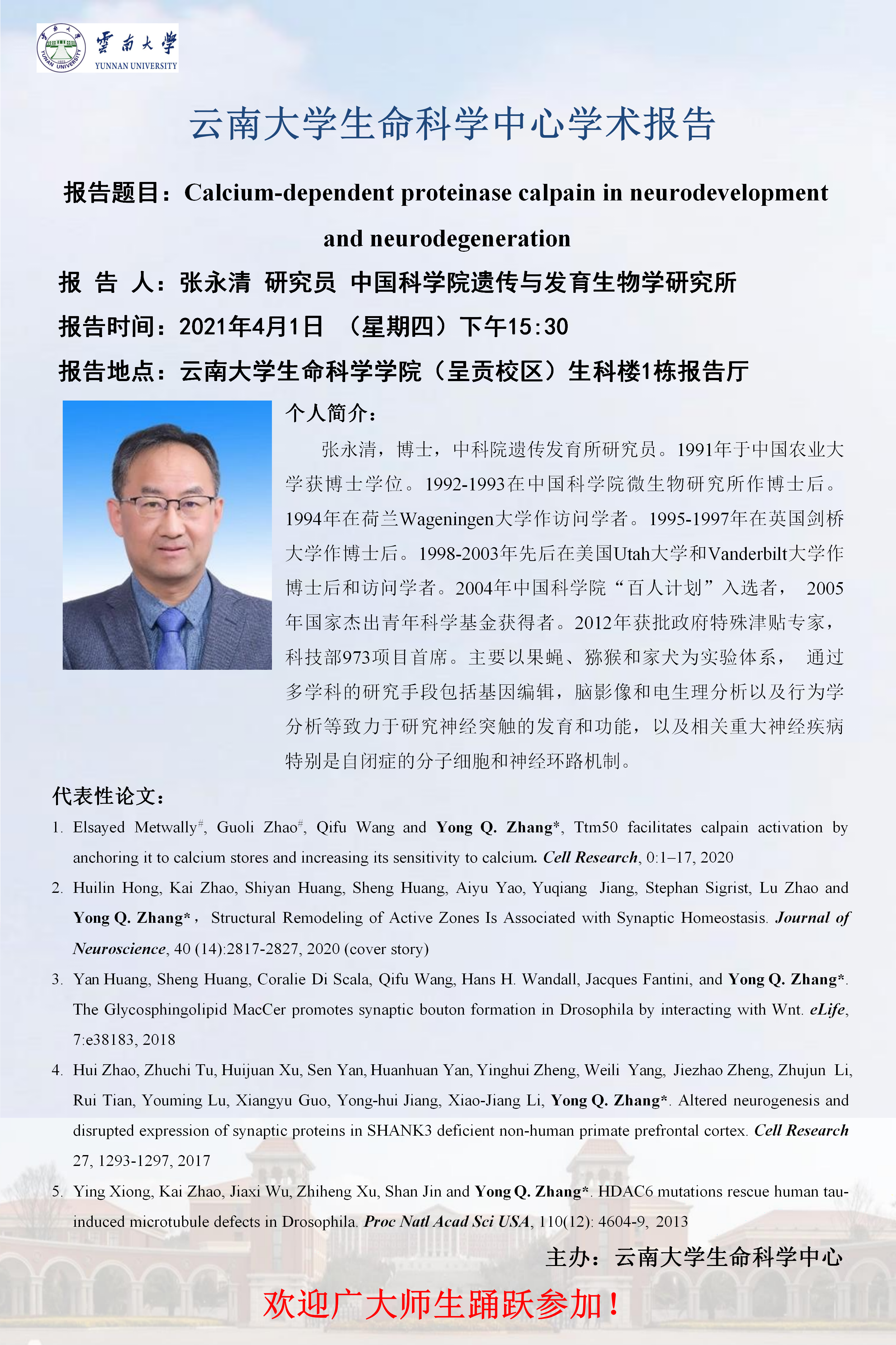 Calcium-dependent proteinase calpain in neurodevelopment and neurodegeneration-张永清研究员
