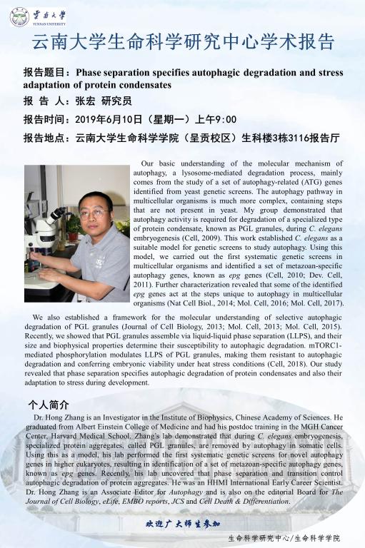 地点:云南大学呈贡校区生命科学学院(呈贡校区)生科楼3栋3116报告厅