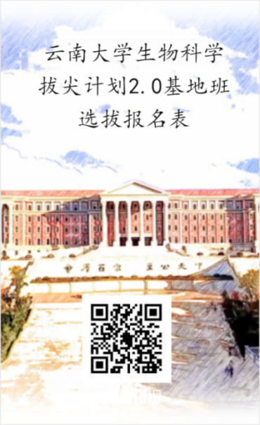 云南大学生物科学拔尖计划2.0基地班2022年选拔办法
