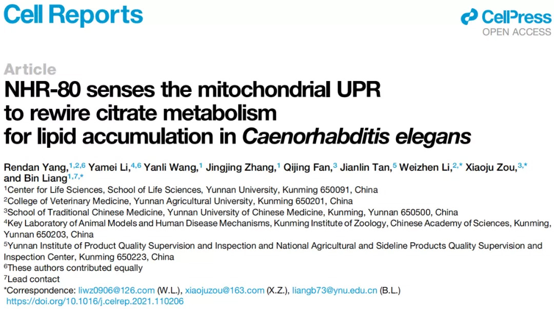 Cell Reports|梁斌团队发现NHR-80响应线粒体应激调控脂代谢