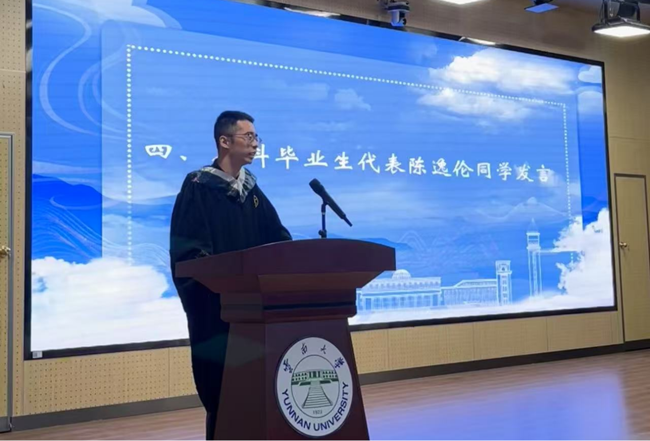 杨崇林“仰天大笑出门去,我辈岂是蓬蒿人!”寄语2025届毕业生,未来的人生道路上有星辰大海之征途接受风雨之洗礼。希望大家谨记“会泽百家 至公天下”的云大精神,自尊、致知、正义、力行,报效国家、服务社会。希望同学们坚守初心,追求真理,永葆一颗年轻的心。期待未来云大生科与生科学子,定将互为骄傲,不负彼此,交相辉映于灿烂之星河。