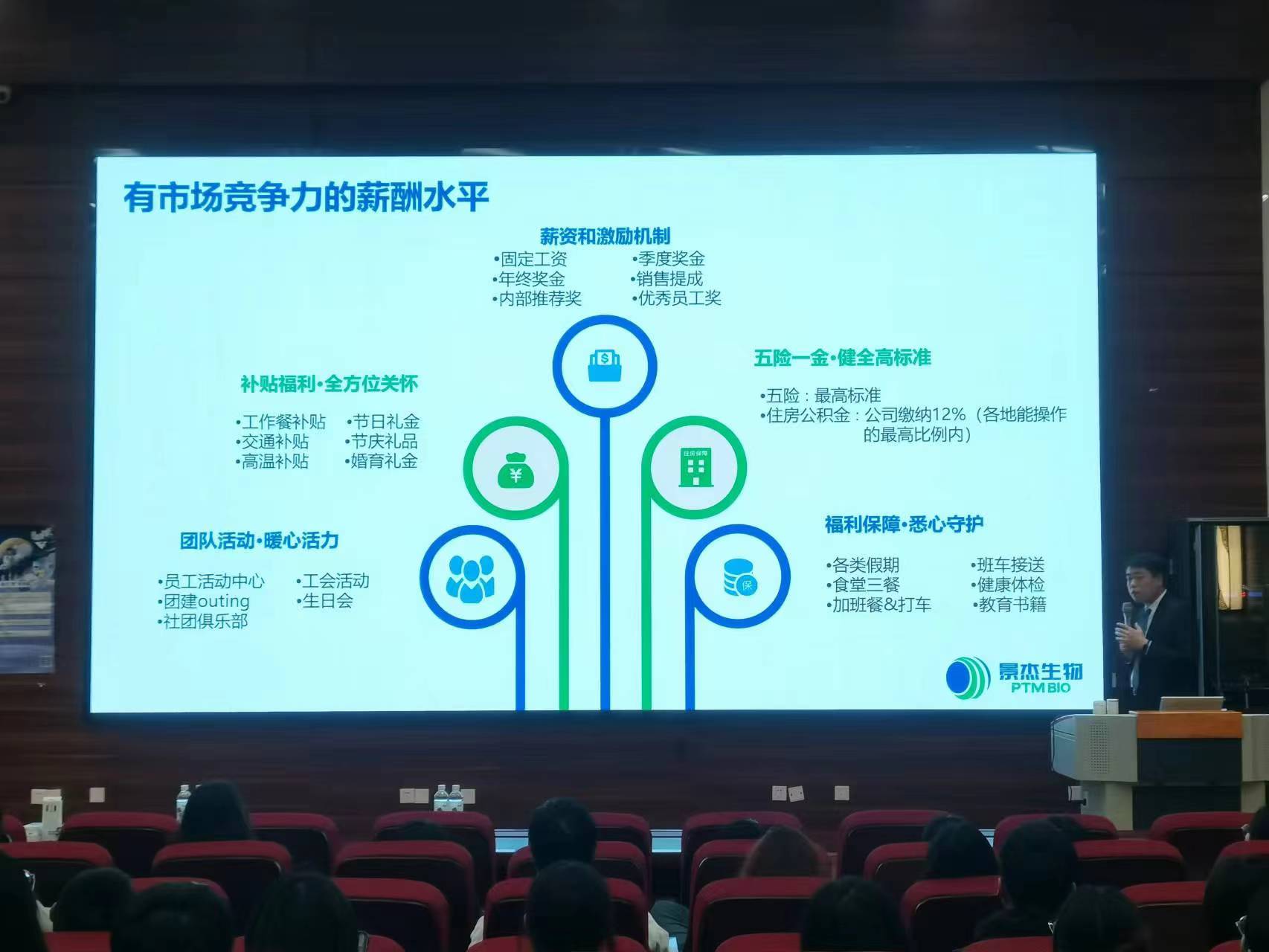杭州景杰生物科技有限公司就企业平台设置、双通道培养体系、“721”成长体系、校招对象、岗位类型、工作地点、薪酬福利、招聘流程等内容进行了详细的介绍,诚邀云南大学优秀毕业生们的加入。学院2024届毕业生们积极参与现场招聘会,了解企业和行业的发展趋势,主动与企业沟通交流。招聘宣讲结束后,学生积极投递简历,参加现场面试。