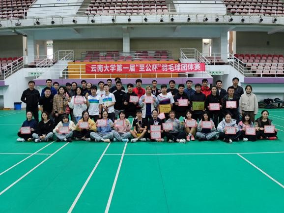 云南大学第一届“至公杯”羽毛球团体赛于2021年11月13日、14日在云大羽毛球馆顺利举办,共有25个学院学生代表队参赛。生命科学学院代表队在此次比赛中团结协作,奋勇拼搏,首日以小组赛第一的成绩晋级8强争夺赛,在冠亚军争夺战中对阵体育学院,在激烈对决后以1胜2负输给体育学院,获得全校团体赛第二名。