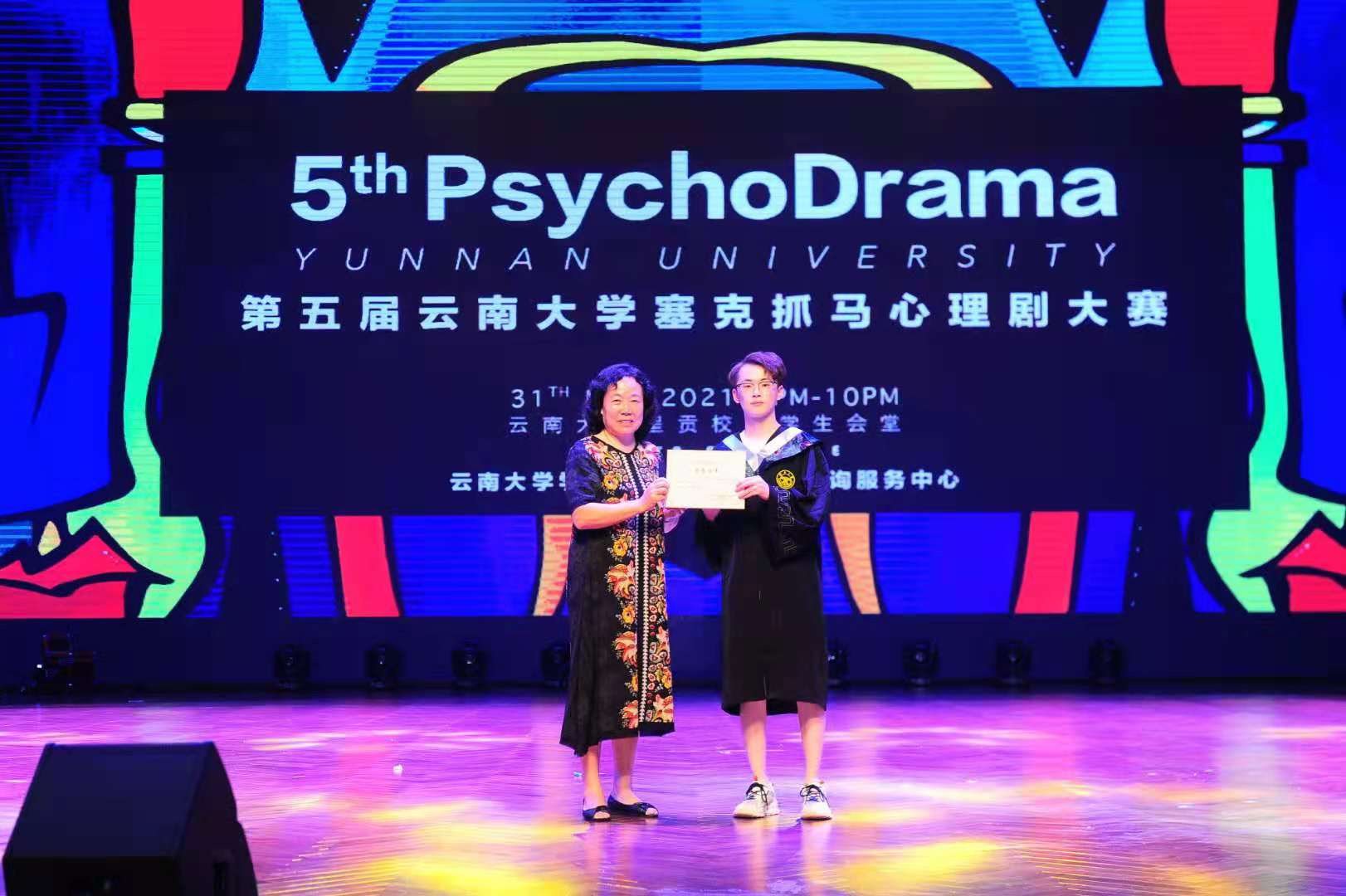 2021年5月31日晚,由云南大学学生工作部心理咨询服务中心举办的云南大学第五届心理剧大赛在学生会堂举办。我院话剧队所表演的剧目《你好,毕业季》荣获校赛一等奖。