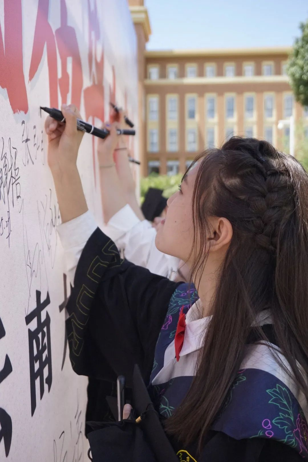 14:00毕业典礼在图书馆西附楼举行开幕活动,毕业生们签字、留影、走红毯、领取学院为每位同学定制的专属毕业礼。