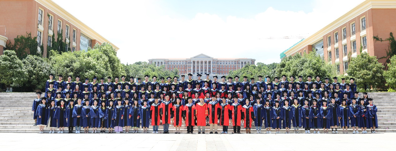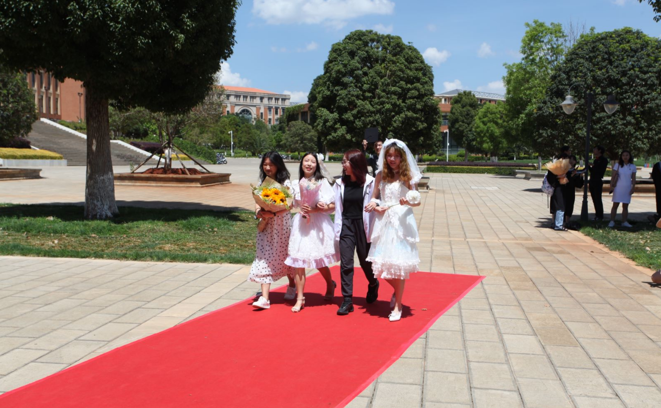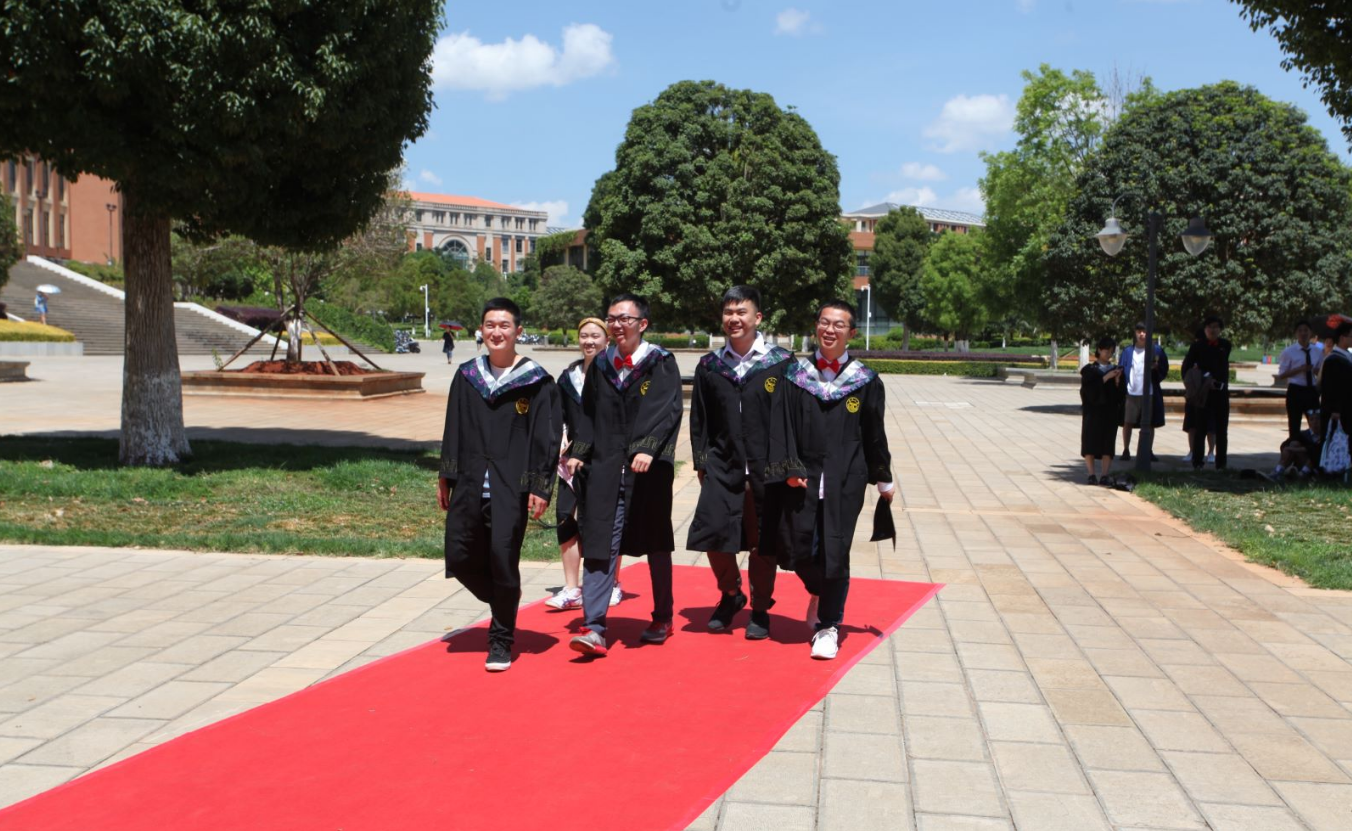 早晨毕业照拍摄,同学们穿着学院统一定制学位服,来到明远楼前,与老师同学一起留下和云大的记忆。