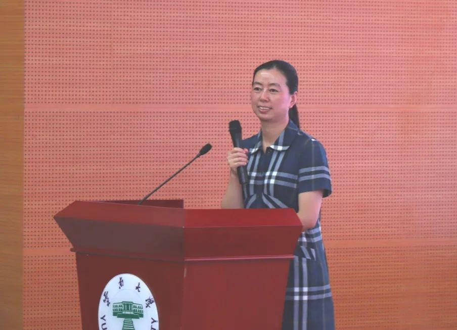 2017级生物技术、生物技术基地班班主任杨柳老师作教师代表讲话。言辞间是对同学们满满的关心,对同学取得成绩的祝贺,对大家未来的期盼。寄语未来,杨柳老师希望同学们今后的学习工作中,坚持锻炼身体、保持乐观心态、工作学习任劳任怨、待人真诚勇担责任。