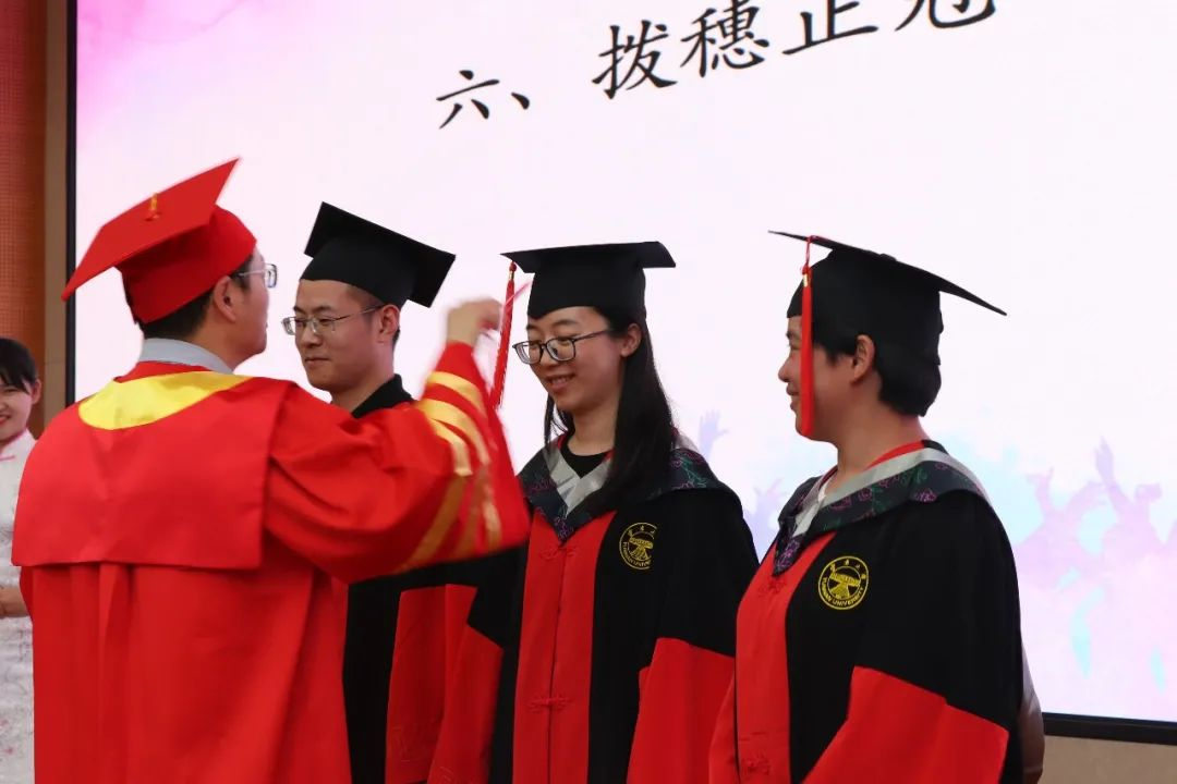 院党政领导、导师们身着导师服,为全体毕业生拨穗,将毕业证郑重的交到同学们手里,同时还不忘询问同学们的情况,眼神里满满都是关心与祝贺,最后与同学们相拥道别,同学们也将最美的鲜花送给辛勤付出的老师们。