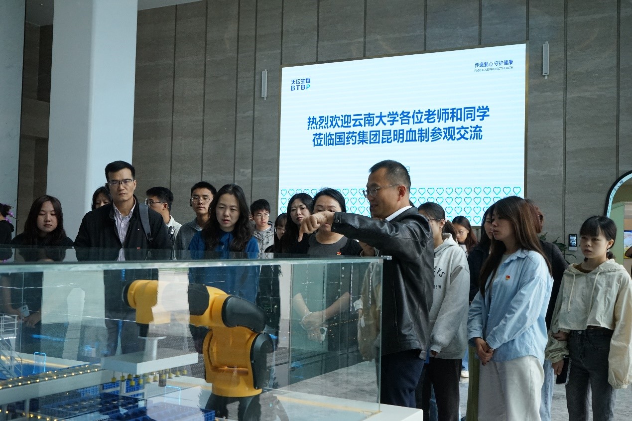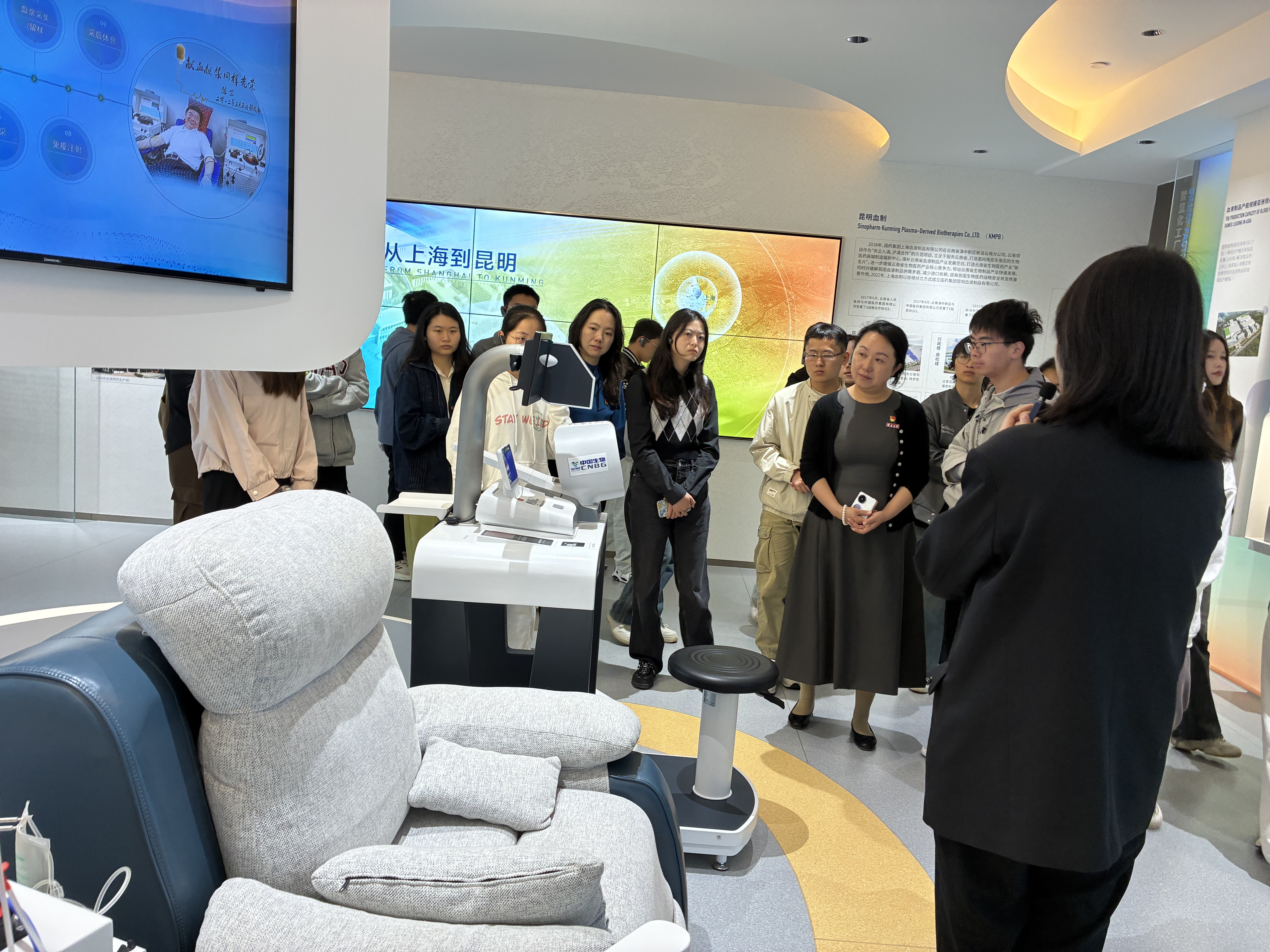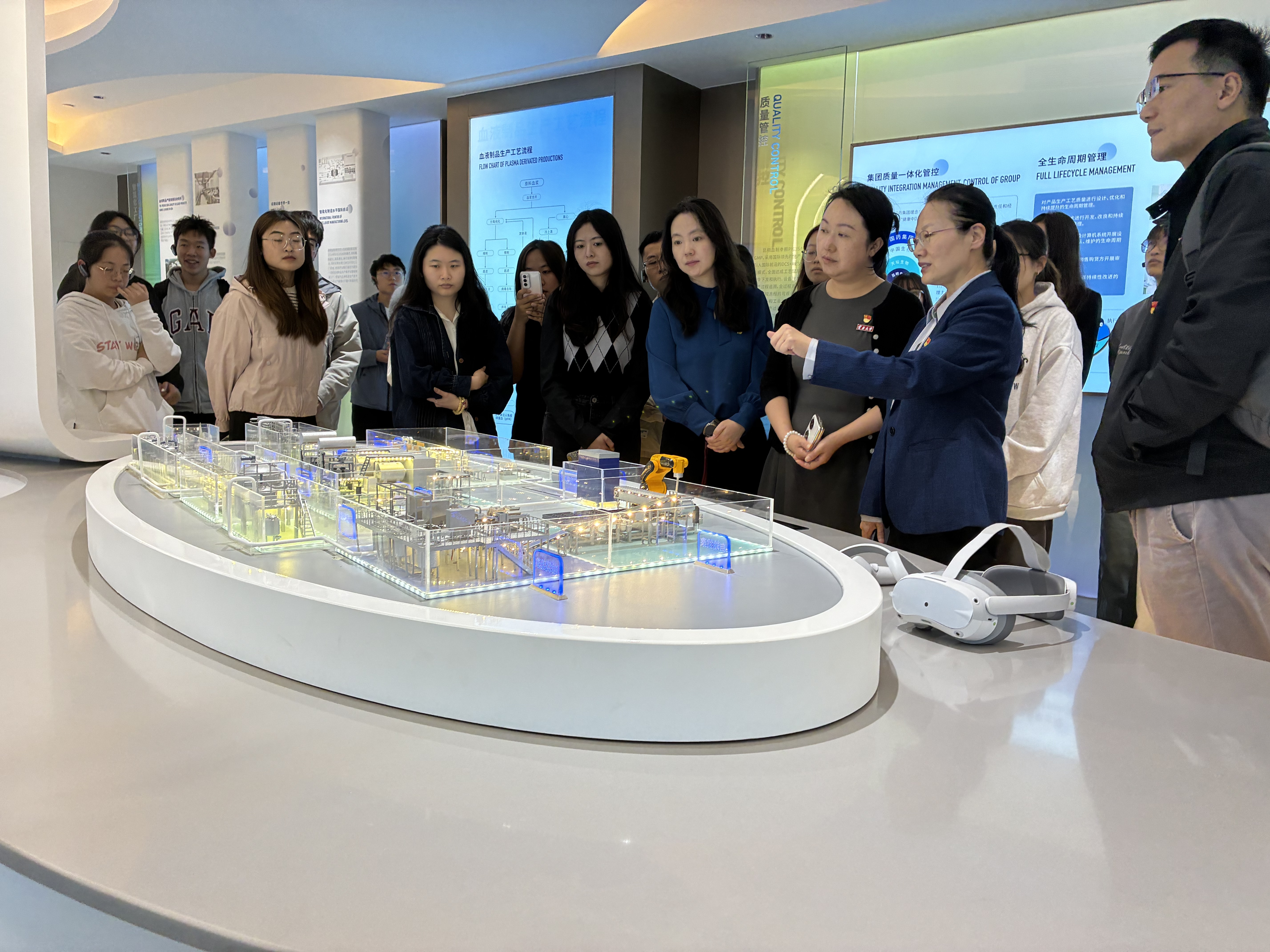 师生们在专业讲解员引导下,依次参观血液制品智慧工厂展示厅,了解生产工艺模型,并沉浸式体验智能制造车间布局、全自动血浆挑选组批系统及包装线、信息中心建设,深刻感受生物医药产业智能化转型趋势,洞悉“智能制造”产业新动能。