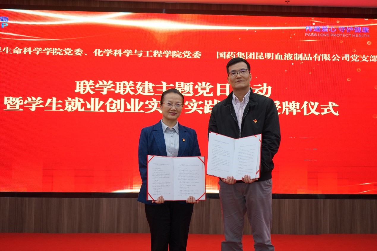 本次联学联建活动主题党日活动,通过“向新而行”的理论武装,“向实而兴”的产教对话,“向远而进”的成才宣言,以党政作风建设深学筑牢信仰之基,透过校企实践对话共谋发展新篇。未来,生命科学学院将同国药集团昆明血制公司把实习实践基地的各项工作与科研育人相结合,把校企联合培养科研育人转化为促进学生全面发展的实际行动,为推动生物大健康产业发展贡献我们的力量。