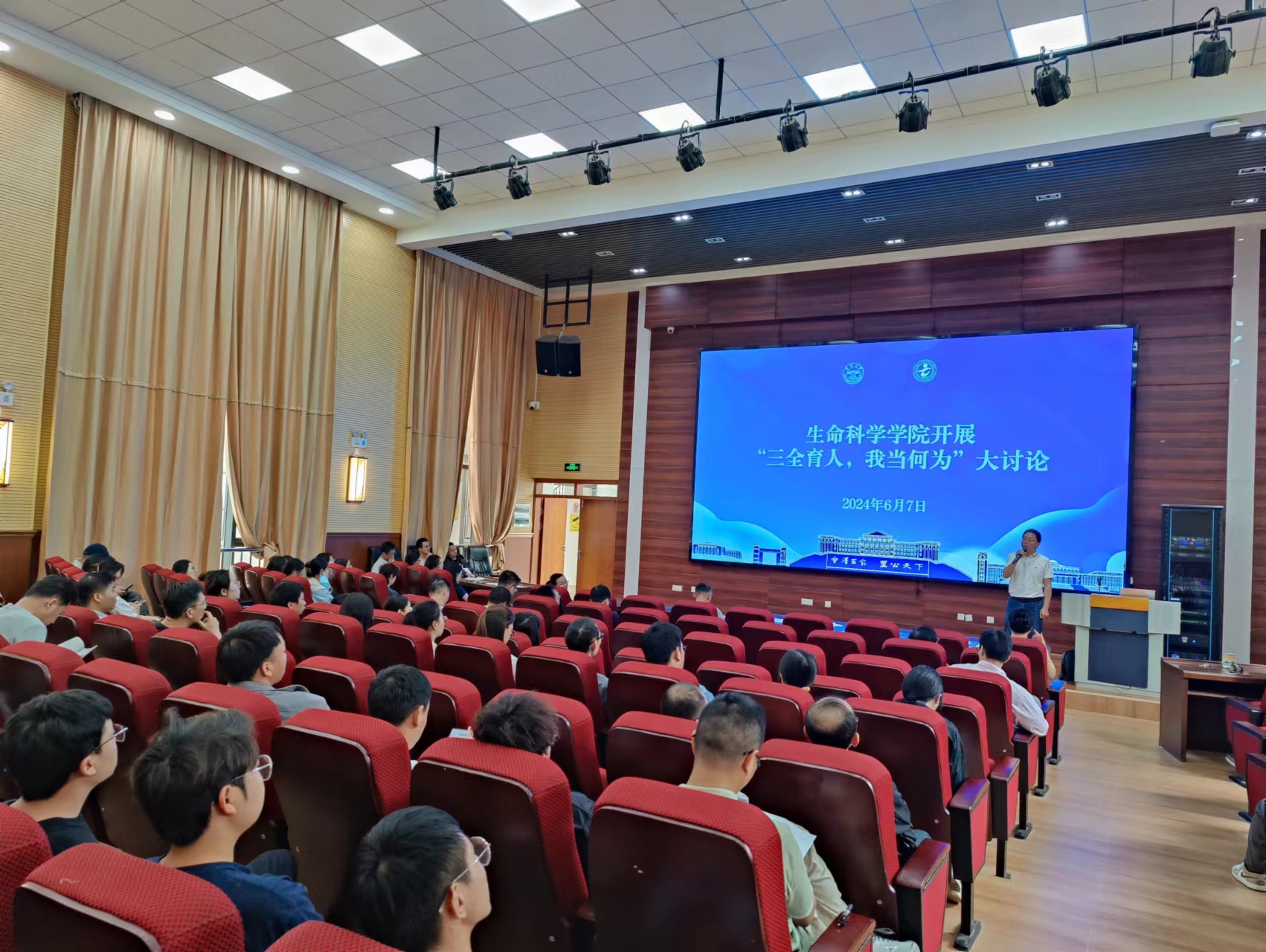 2024年6月7日,生命科学学院“三全育人,我当何为”大讨论集体学习会议在学院1栋报告厅召开,学院全体教职员工参会,学院党委副书记何雨洋主持会议。学院党委书记包崇许带领全体教师系统学习“三全育人”相关知识,提出工作要求,严格根据通知要求完成对照检查、整改落实相关工作。