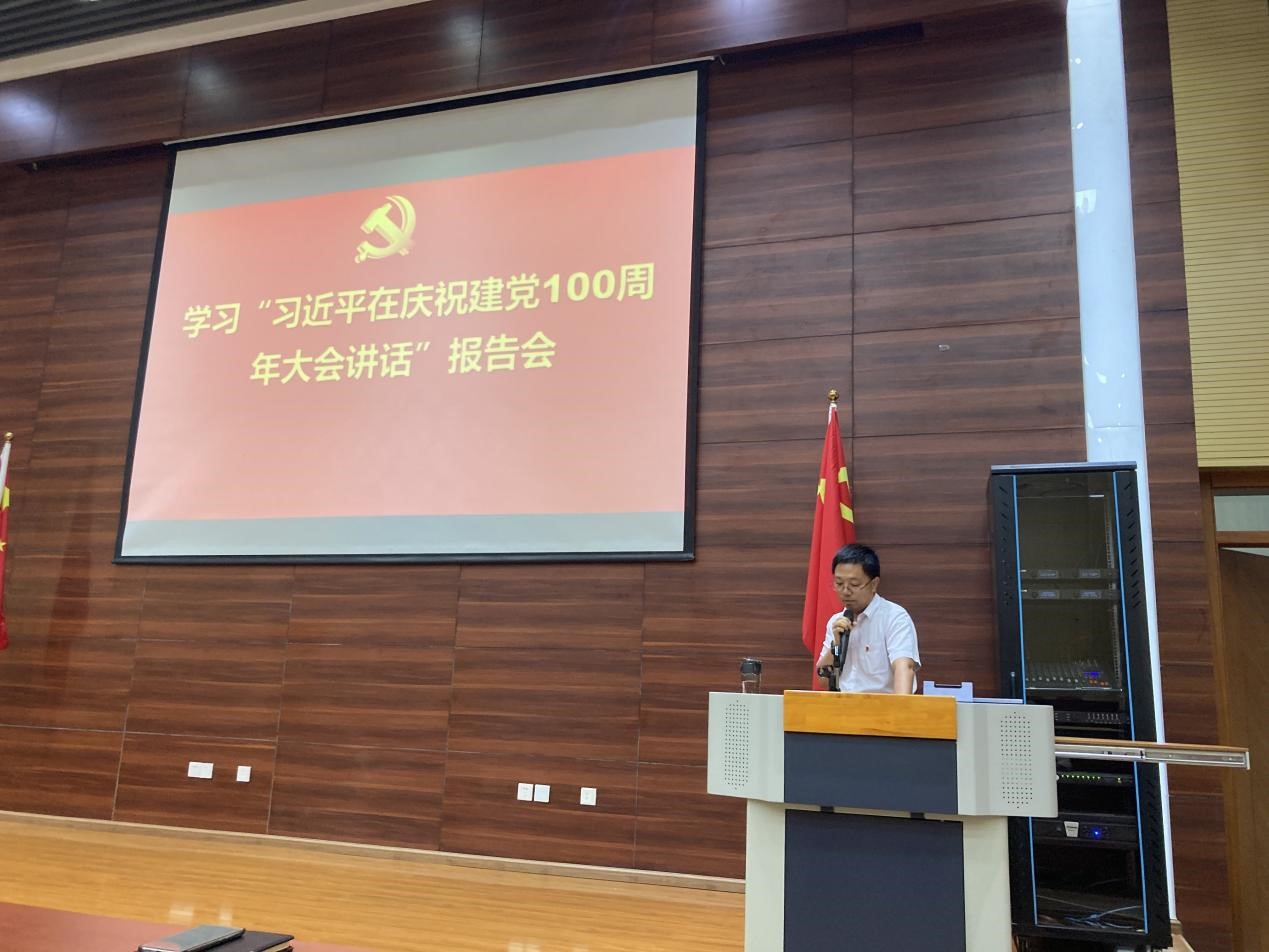 院党委书记包崇许同志做了学习“习近平总书记在庆祝建党100周年大会讲话”的报告。他说,召开庆祝建党100周年暨“两优一先”表彰大会,其目的是缅怀党的奋斗历程,重温党的光荣历史,回顾党的丰功伟绩,弘扬党的优良传统,表彰优秀先进典型,激励全体共产党员牢记初心使命,坚定信念;保持清醒头脑,笃定前行;坚持蓬勃朝气,不负韶华,努力推动工作开创新局面,取得新业绩。