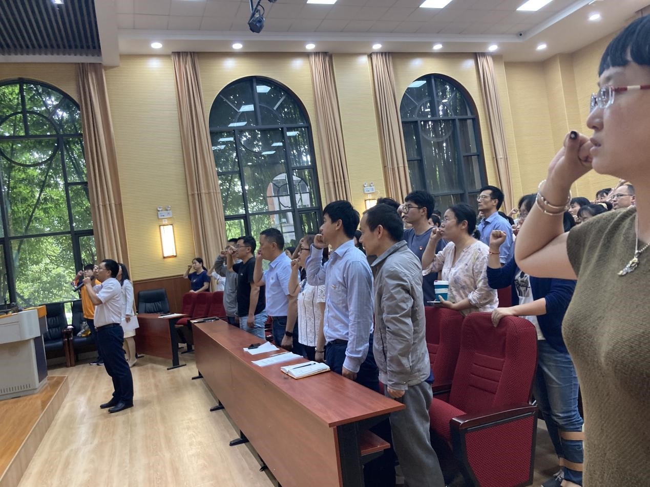 全体党员重温入党誓词,学院党委书记包崇许同志领誓。